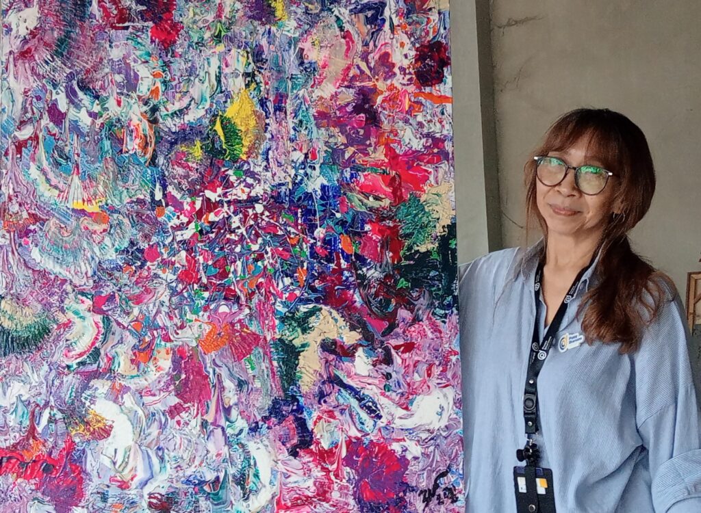 “Penggunaan warna yang enak dipandang mata, serasi, satu kesatuan ketika berpadu, walaupun kadang bertabrakan tetapi ada greget ketika warna-warna itu bertemu di satu bidang” ,tegas Eivi Desianti, ketika penulis bertemu saat mempersiapkan pamerannya.***